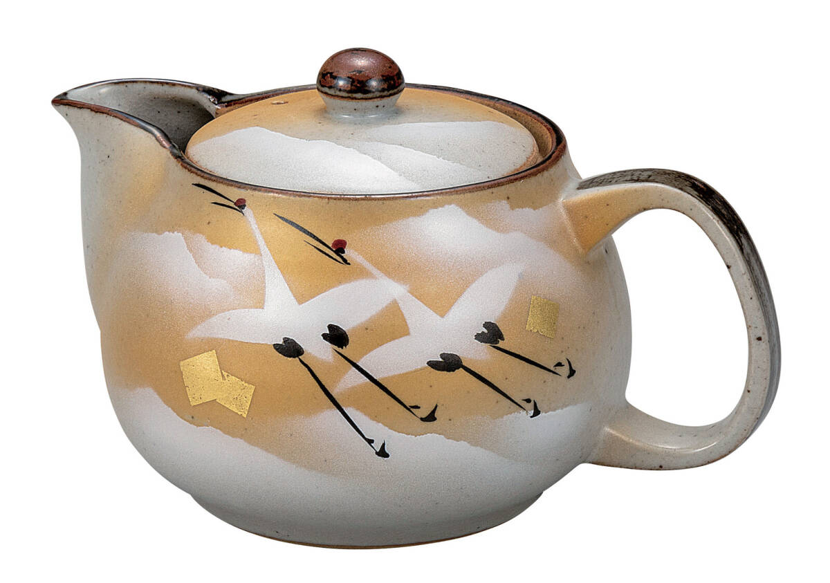 - 九谷焼! ☆金箔群鶴・ポット急須☆ K9-654 新品 コーヒー 紅茶 ミルク ラテ エスプレッソ カプチーノ 茶器 ギフト