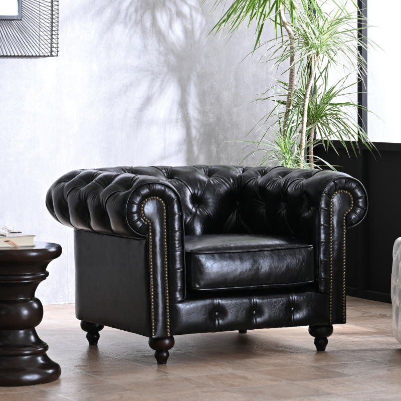 - 新品 チェスターフィールド調 1人掛けソファ クラシック 黒 バイキャストPVCレザー 1P 高級感 リビング 硬め ブラック outlet:ST42-5F-ZQ