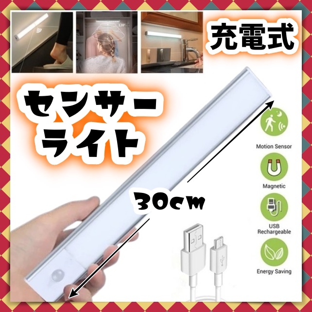 > 30cm 薄型 LED 人感 センサーライト 充電式 調光 自動 点灯 消灯 手元 足元 玄関 廊下 階段 トイレ クローゼット 消し忘れ防止 常時点灯可