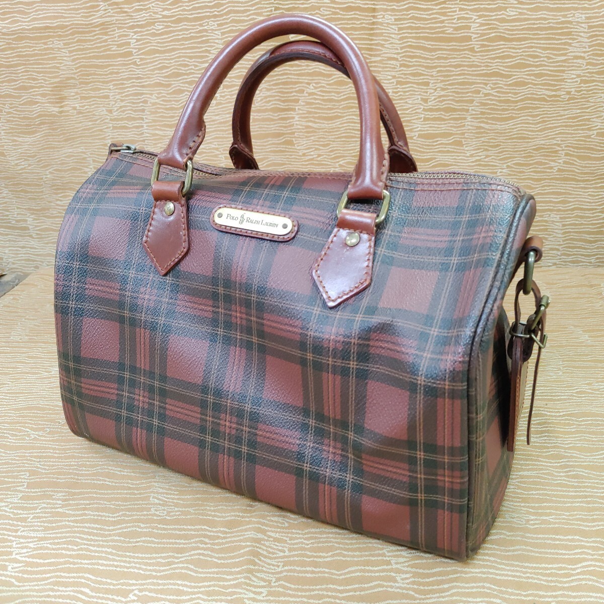 - 【POLO RALPH LAUREN ハンドバッグ】ポロ ラルフローレン チェック柄 ミニボストンバッグ 鞄 茶色 ブラウン【A8-3②】0912