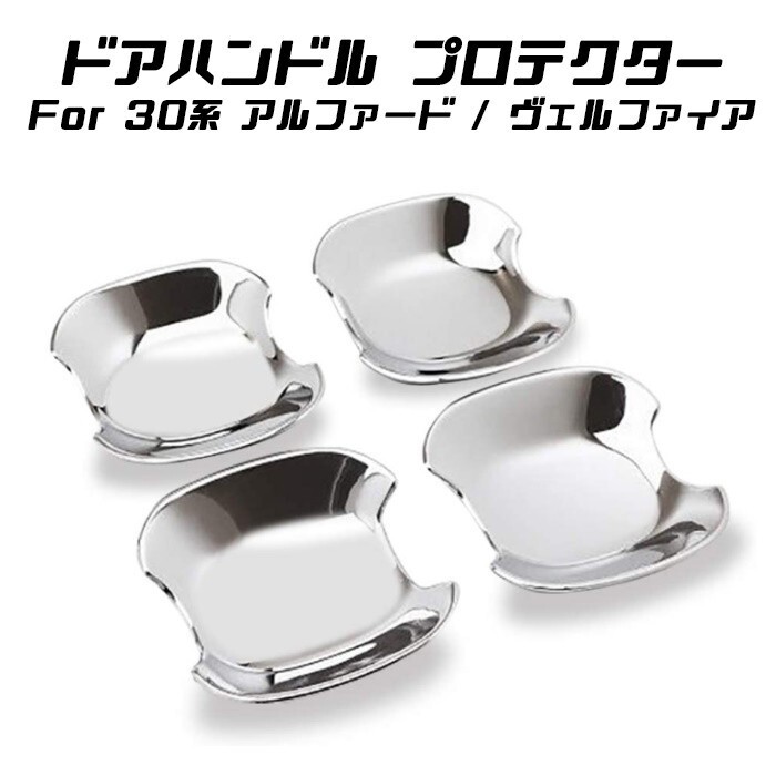 - トヨタ アルファード ヴェルファイア 30系 前期 後期 ドアハンドル プロテクター 4個セット メッキ ドア 保護 ドア 傷防止