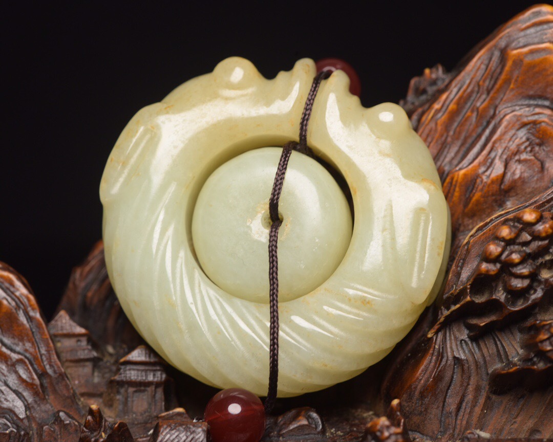 - 【超珍館蔵】和田玉製 細密彫 豬龍 置物 賞物 古賞物 古董品 古美術品 時代物 旧家蔵出 稀少珍蔵品