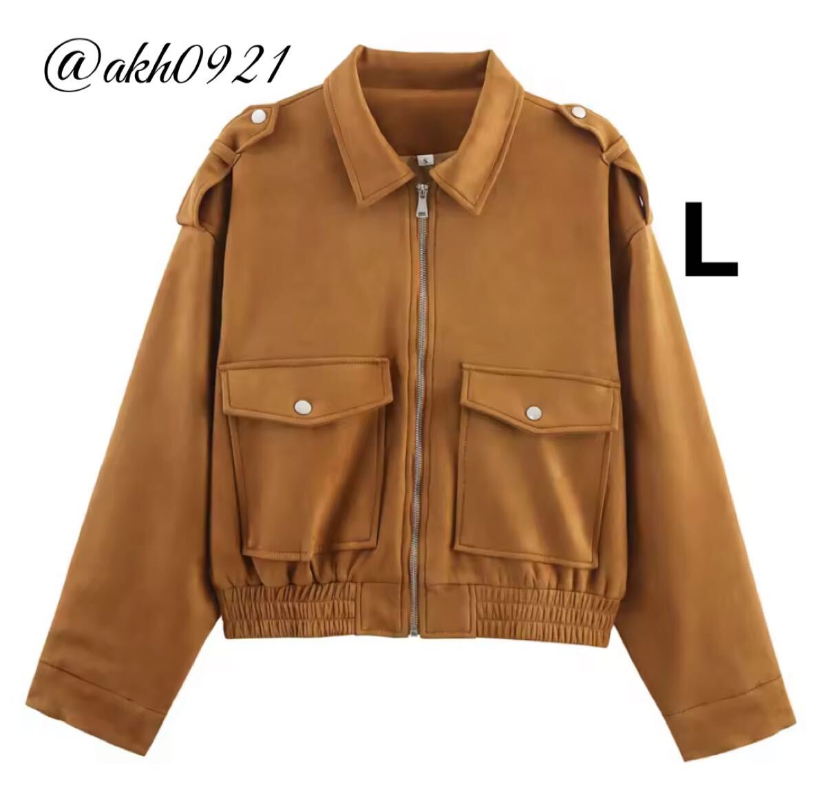 - 新品未使用★秋新作★vintage ヴィンテージ レトロ フェイクレザー ジャケット ブルゾン アウター Lサイズ レディース★ZARA 好きな方に