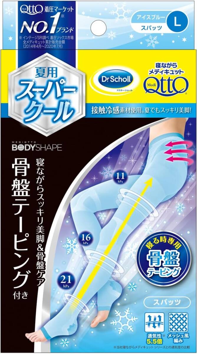 - 寝ながらメディキュット 夏用スーパークール 骨盤テーピング付きスパッツ【Lサイズ】アイスブルー