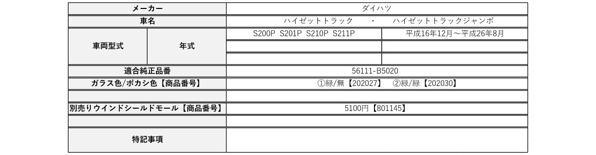 - 5◇新品◇UV&IRカット断熱フロントガラス◇ダイハツ ハイゼットトラック S200P S201P S210P S211P ボカシ無 ボカシ緑 202027 202030