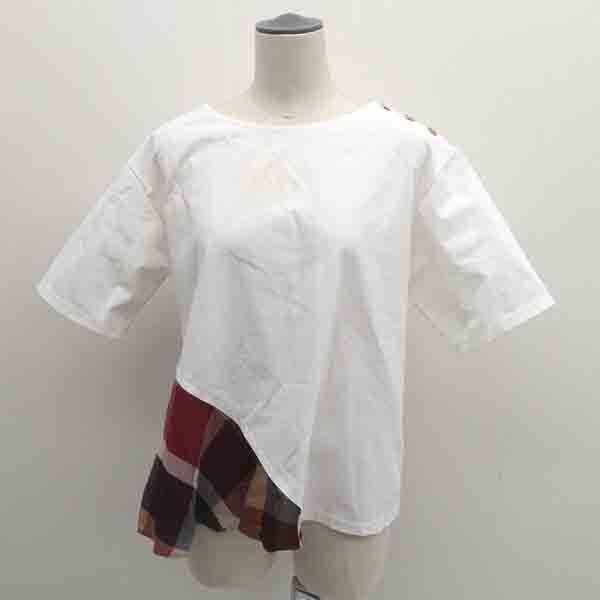 - ★ ブルーレーベル クレストブリッジ 半袖カットソー ブラウス チェック切替 ホワイト×レッド サイズ38 55P09-558-02 (0220533727)