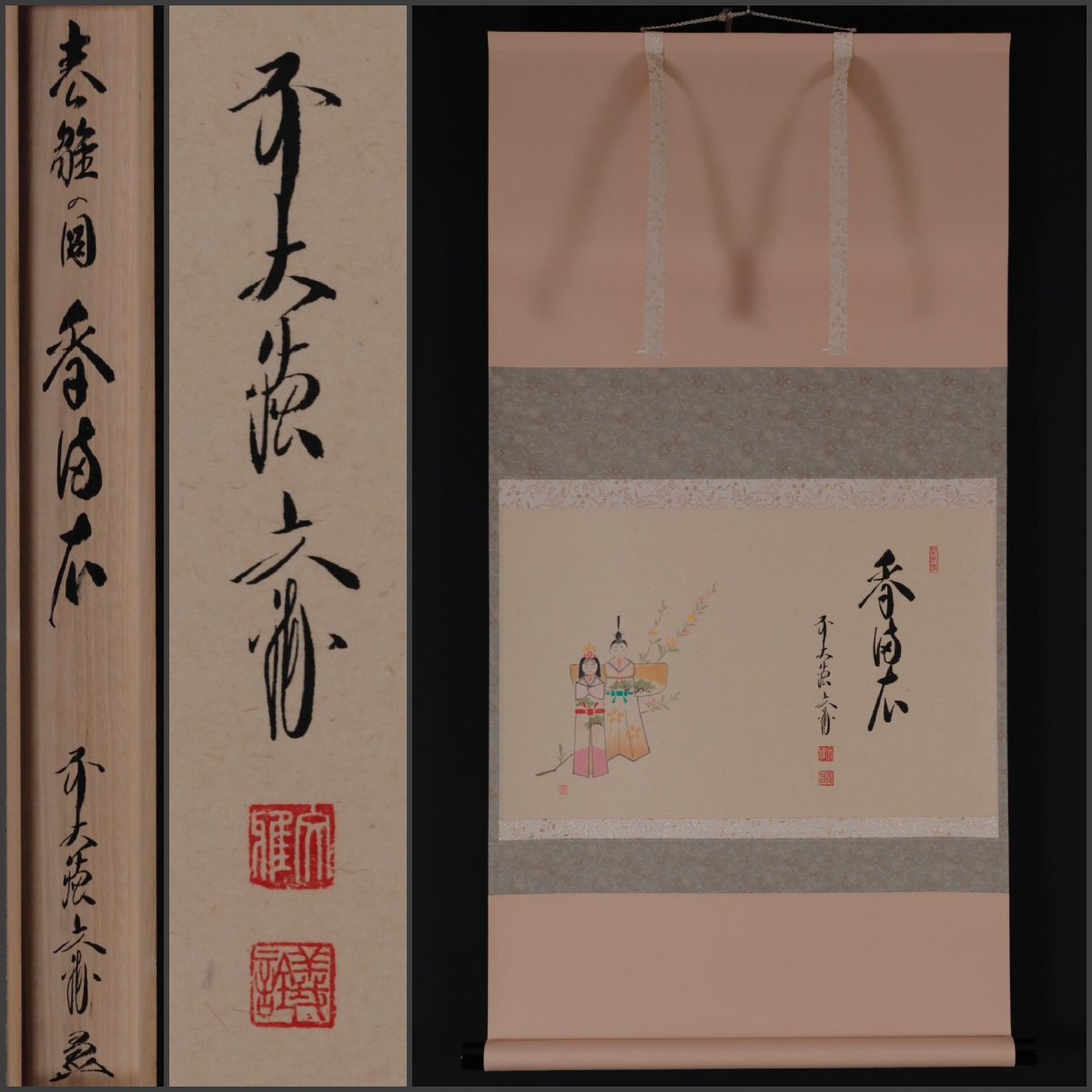 > 【模写】吉】12863 法谷文雅 雛画賛「香満衣」 共箱 小田雪窓師事 臨済宗 大徳寺派 逢春寺住職 仏教 茶掛け 茶道具 禅語 書 掛軸 掛け軸