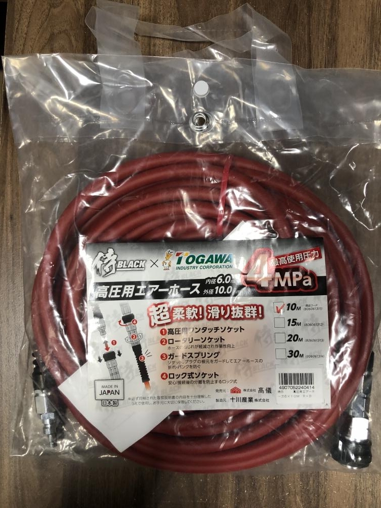 > 008●未使用品・即決価格●高儀 侍BLACK 高圧用エアホース 6×10M
