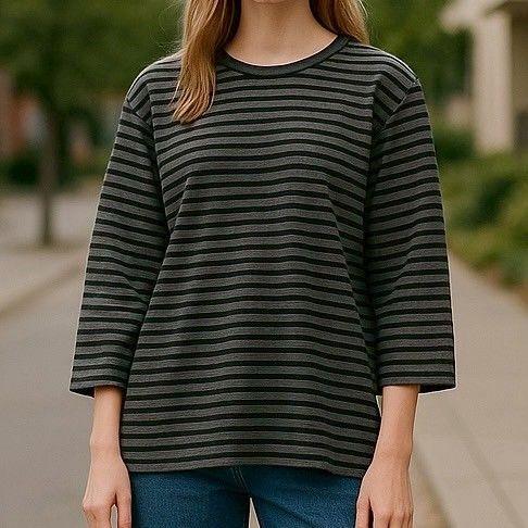 - 美品 cahier sauvage カットソー M〜L グレーと黒のストライプ