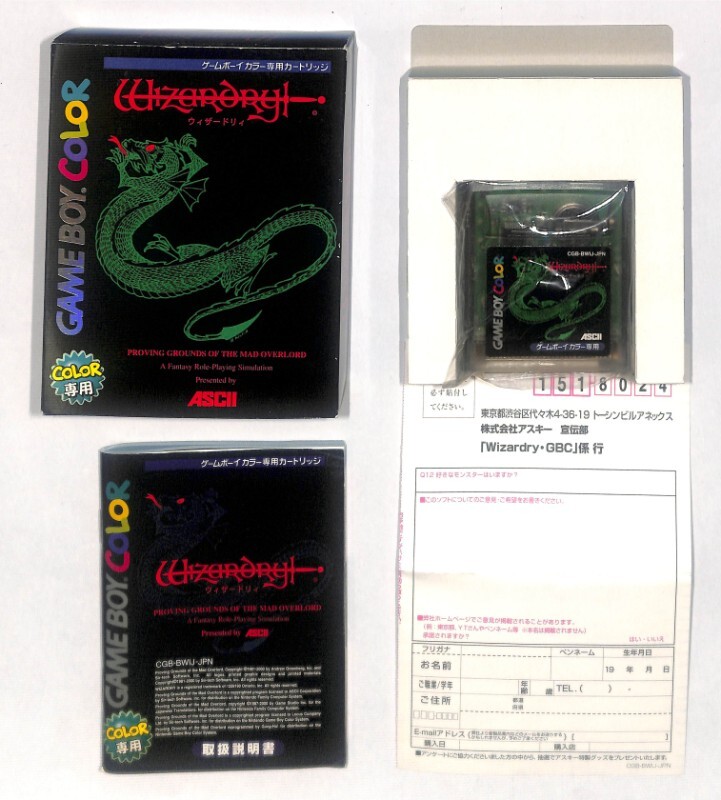 - 美品★GBC ゲームボーイ カラー ウィザードリィ 箱 取説 ハガキ付★0886 R240 動作品 GB 箱 説明書 希少 任天堂 平成 レトロ ゲーム ソフト