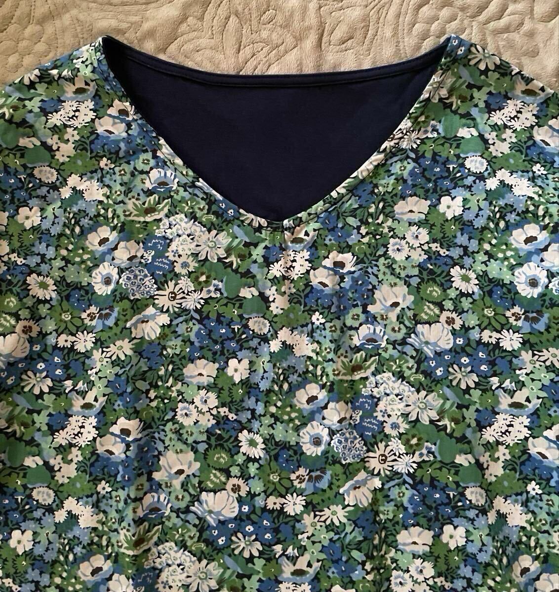 - リバティ カットソー 花柄 ソープ 無地 Vネック 緑 青 ローラデックス 長袖 日本製 ノンブルアンペール