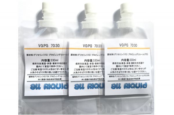 - 送料無料(国産) ベースリキッド【VG:70 PG:30 混合液】 植物性グリセリン プロピレングリコール 990ml (330ml×3個入り) ALL RIQUID製