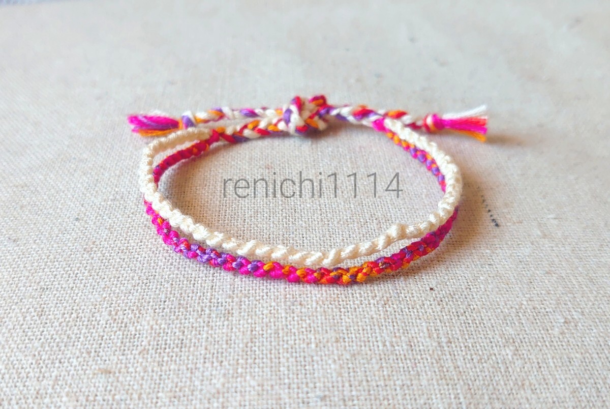 - ミサンガ☆2連 ピンク系ミックス&クリーム色☆アンクレットにも