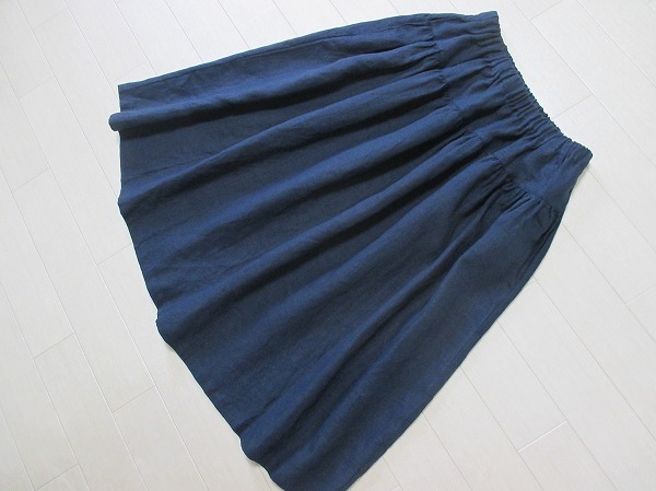- 大きいサイズLL 未使用/JAPAN LINEN 日本製 麻100% イージーギャザーリネンスカート 腰ゴム
