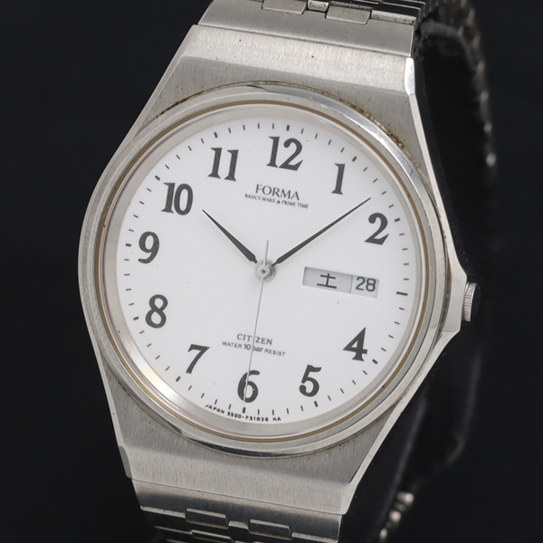 > 稼動 QZ 良品 FORMA シチズン 5500-F50107TA 白文字盤 デイデイト レディース腕時計 KRK 2000000 NSK