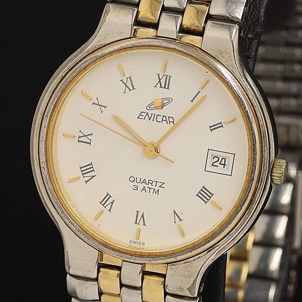 - 稼動 エニカ 955.359 QZ ホワイト文字盤 デイト メンズ腕時計 OWD 2000000 NSK
