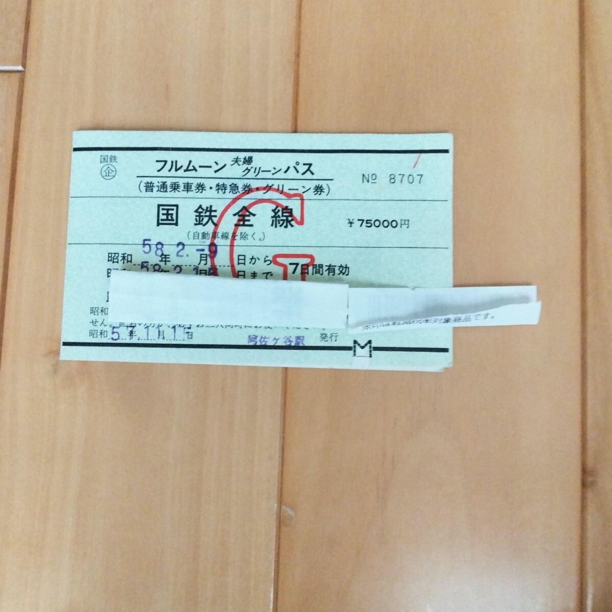 - フルムーン夫婦グリーンパス普通乗車券、特急券、グリーンパス、国鉄全線、阿佐ヶ谷駅発行
