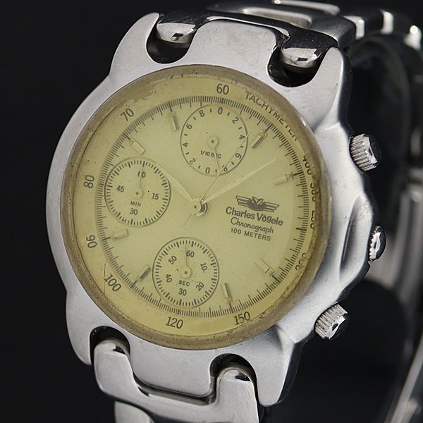 - 稼働 良品 シャルルホーゲル 100M CV-7345 QZ 黄色文字盤 クロノグラフ ラウンド メンズ腕時計 OSW 2000000 NSK