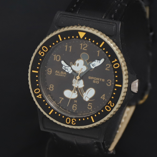 - QZ セイコー アルバ ミッキーマウス スポーツ50 Y481-017A 黒文字盤 レディース腕時計 2000000 NSK KRK