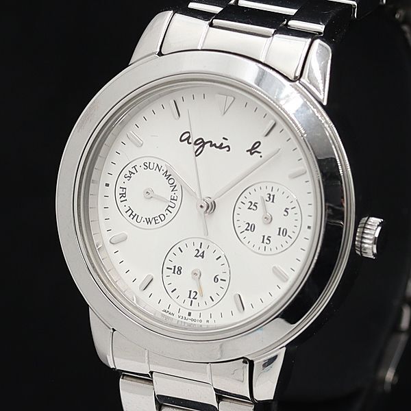 > 保/箱/コマ3付 稼働 良品 アニエスベー QZ V33J-0010 白文字盤 クロノグラフ メンズ腕時計 TCY2000000 NSK