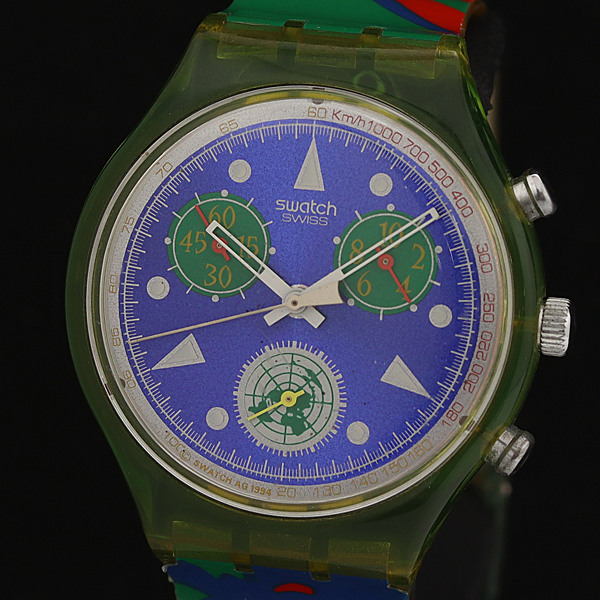 - 稼動 スウォッチ QZ クロノグラフ ラウンド 青文字盤 メンズ腕時計 2000000 NSK INU