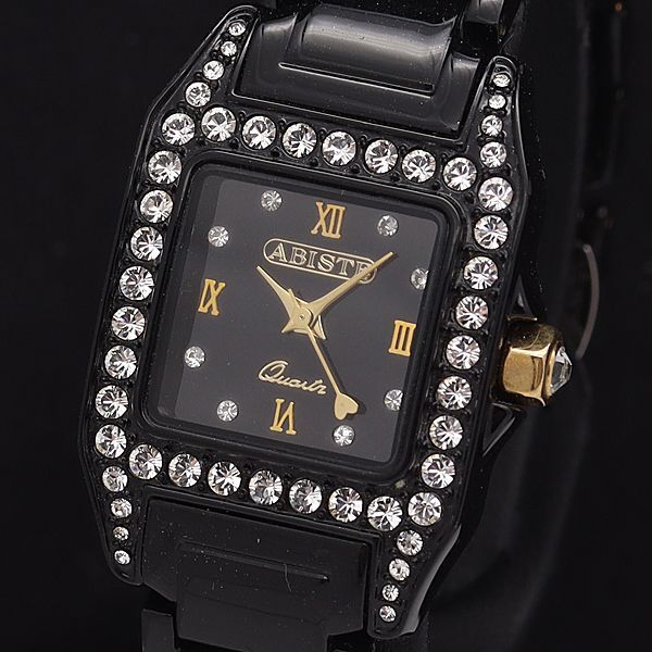 - 稼働 良品 アビステ QZ 黒文字盤 石付 スクエア レディース腕時計 NKG SGN