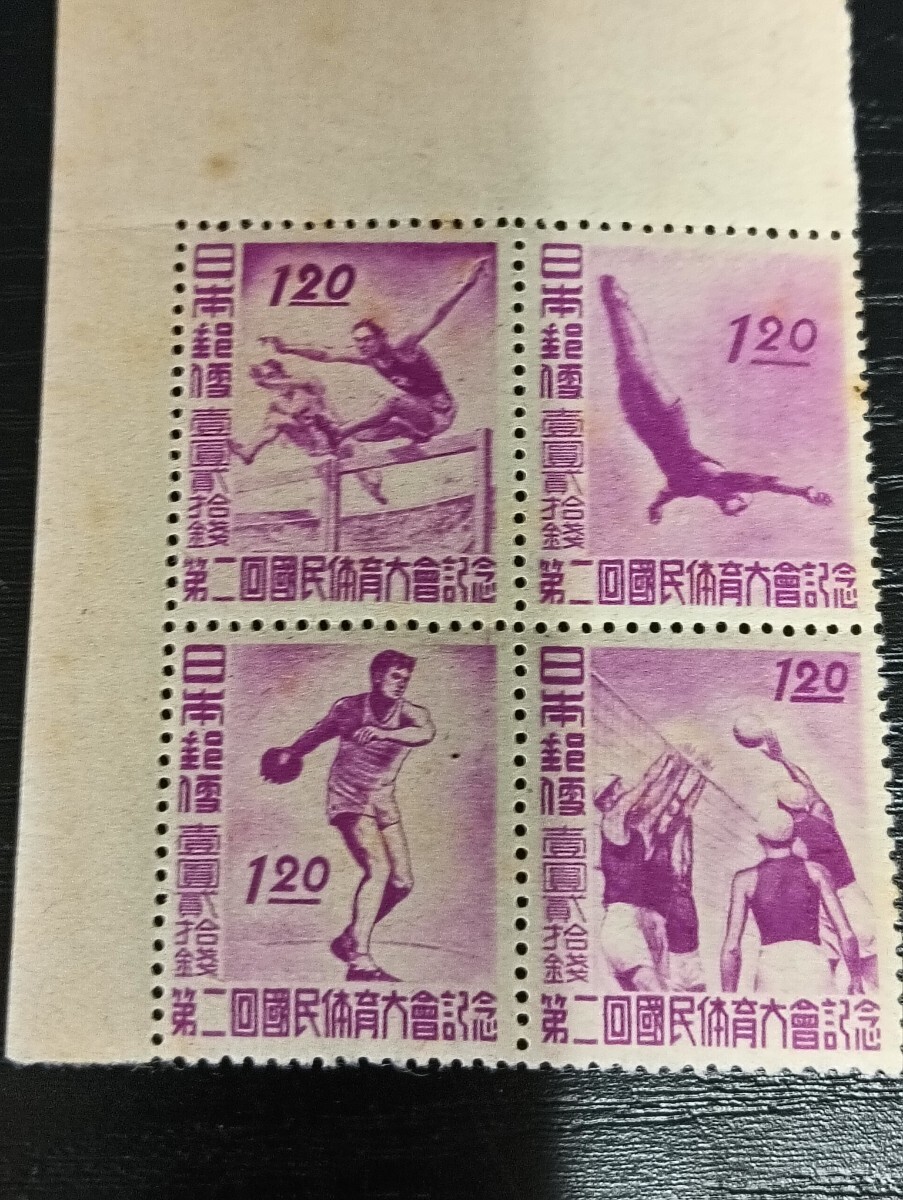 > 【25*90060】◆未使用◆第二回国民体育大会記念切手4枚◆日本切手◆1947年10月25日 1円20銭◆田型シート◆コレクション