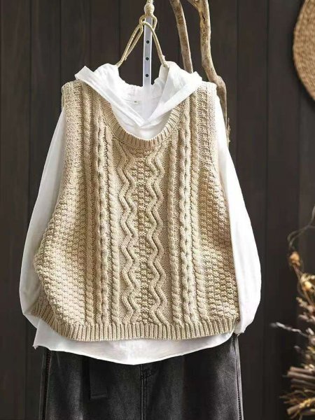 - zy 2509 ベスト ニット セーター 綿100% チュニック トップス ゆったり フリーサイズ ナチュラル ケーブルニット5