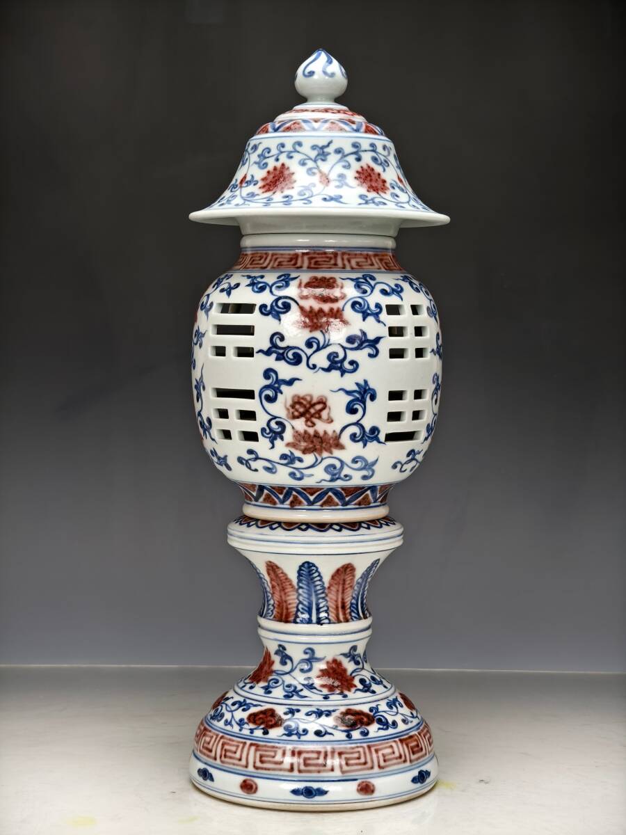 > 9+208620「東洋美術」 中国骨董 人間国宝 磁器製品【蓮模様の割香炉】 旧物 孤品 珍品 陶磁器 収蔵価値が高い