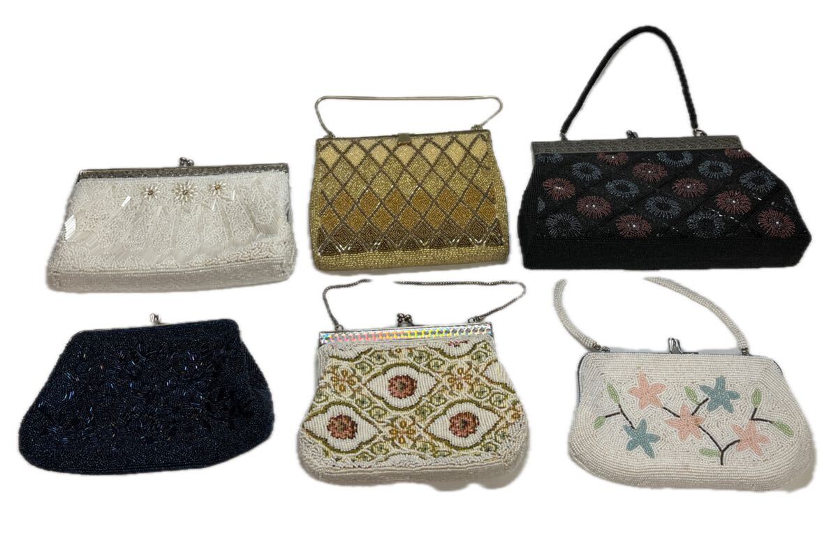 > 《ジャムルK》QKt0913-78◆ビーズバッグ まとめ 6個 和装バッグ 和装小物 総ビーズ レトロ ヴィンテージ