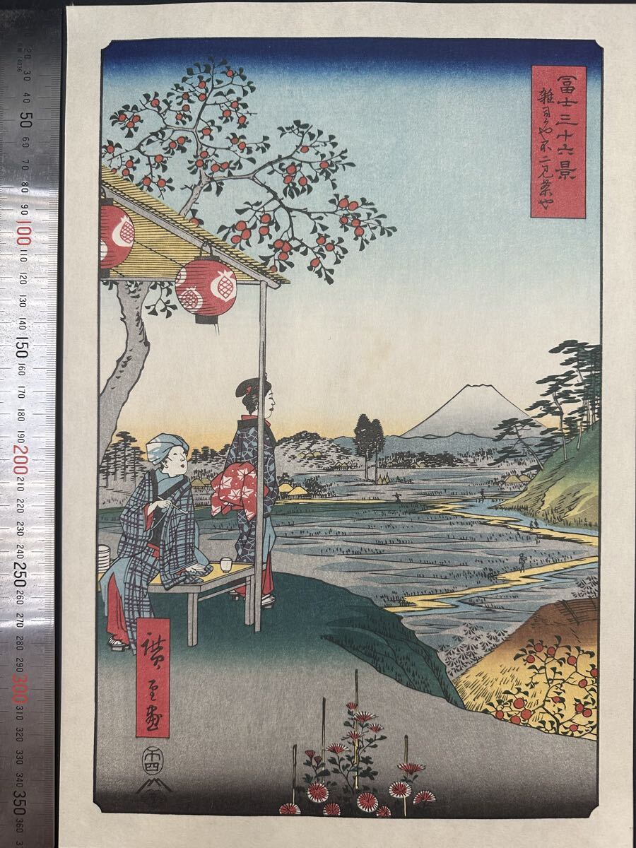 - 【真作】大正期 浮世絵木版画 歌川広重「冨士三十六景 雑司がや不二見茶や」名所絵 大判 錦絵 保存良い