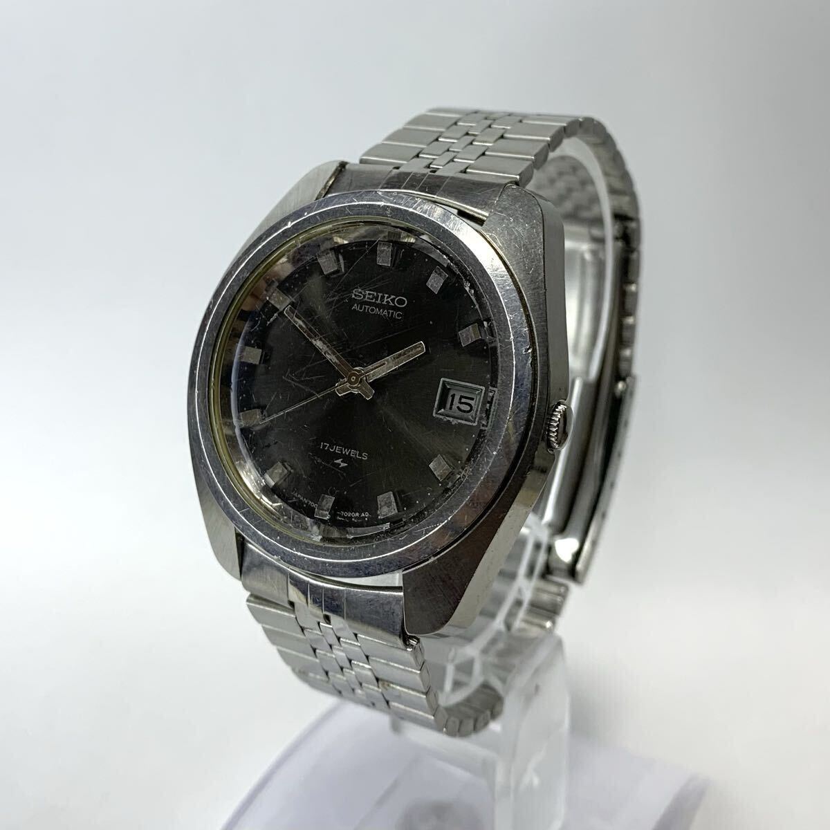 > 【稼働品】SEIKO AUTOMATIC 17石 7005-7030 メンズ 腕時計 自動巻き ブラック文字盤 シルバー w140