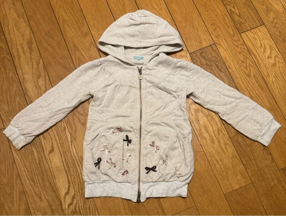 - TOCCA 110 リボン 薄手アウター 長袖ジップアップ パーカー グレー トッカバンビーニ メゾピアノ 組曲 エニィファム 100 120