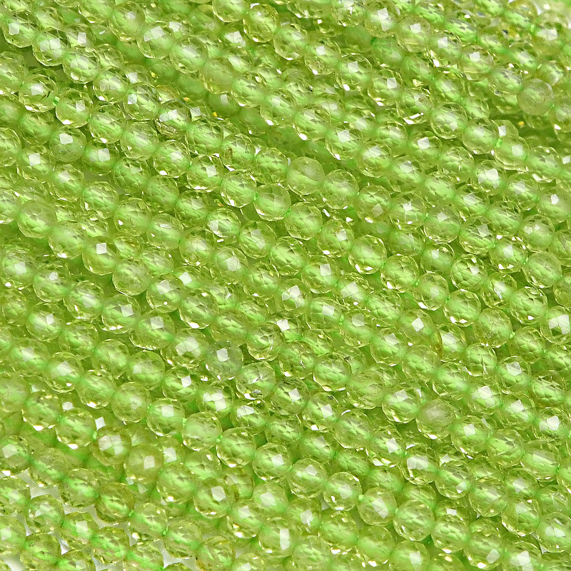 - ペリドット 面カット 丸玉 2mm[プレミアムカット]【1連販売】 / 7-7 PE2MC