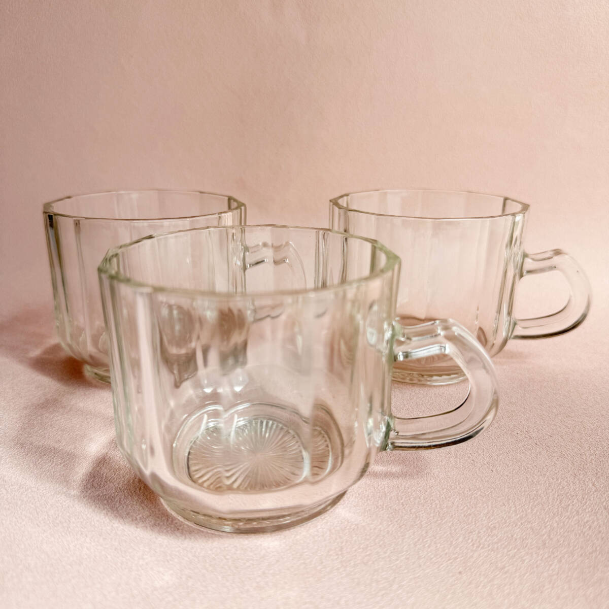 - K7-1319 ヴィンテージ プレスガラス カップ 3個セット マグカップ 食器 レトロガラス