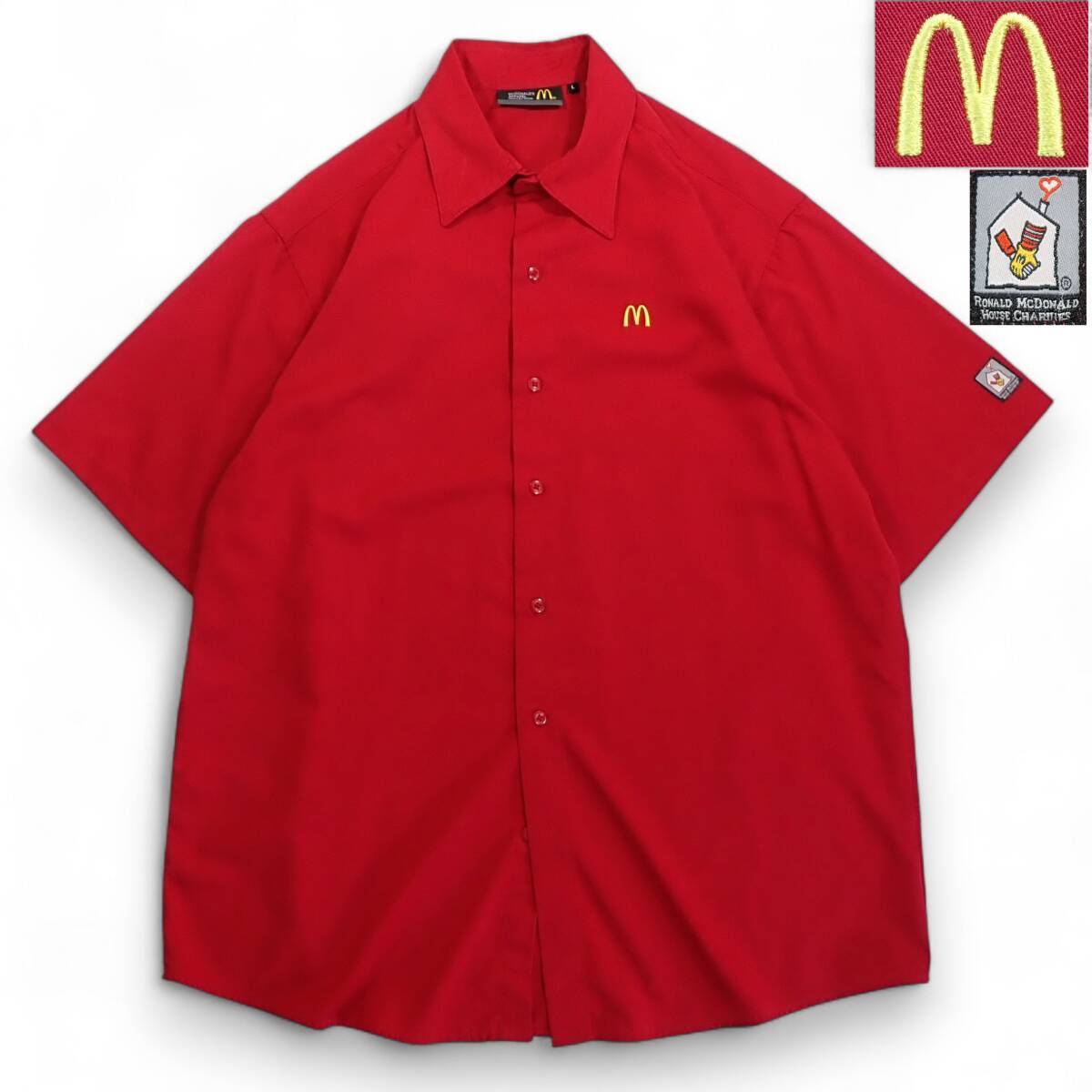 > 6988/非売品オフィシャルMcDONALD'S APPAREL COLLECTION半袖ワークシャツL●刺繍マック マクドナルド スタッフ ユニフォーム赤●洗濯済古着