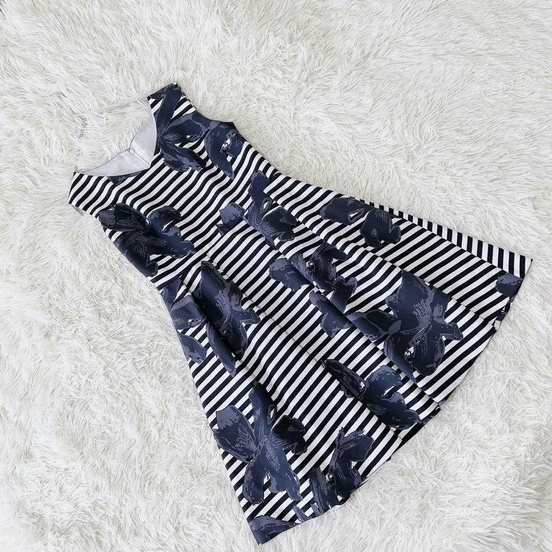 - 《セシルマクビー》 (M) ノースリーブタックフレアワンピース ボーダー 花柄