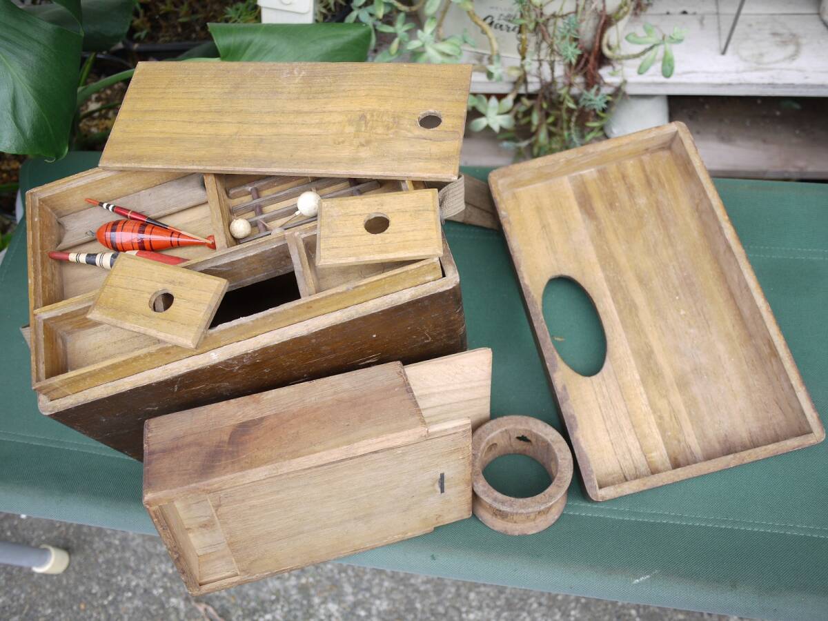 - 1 タナゴ箱 タナゴ水箱 道具箱 鮒水箱 合切箱 コブナ 小鮒 タナゴ たなご 木製 浮き 仕掛け巻き