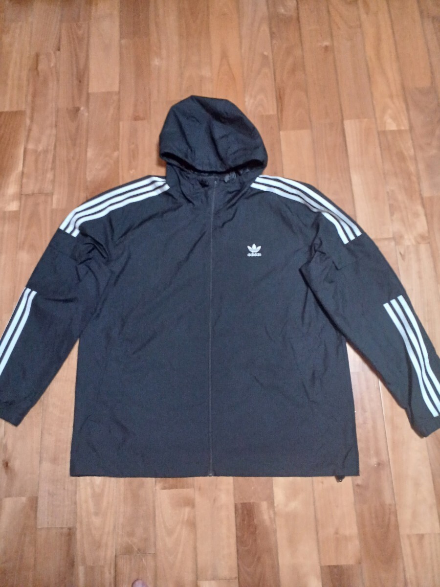 - adidas アディダス ナイロンジャケット 3XO ブラック トレフォイル リップストップ生地
