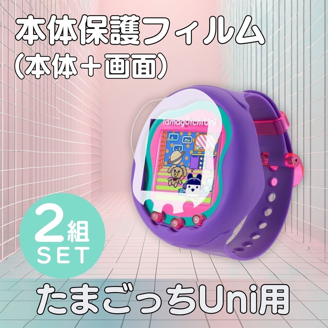 - たまごっちユニ uni 保護フィルム 保護カバー 2組セット 画面 本体 透明 クリア 指紋防止 防汚 本体保護 画面保護 傷防止 耐衝撃性 液晶