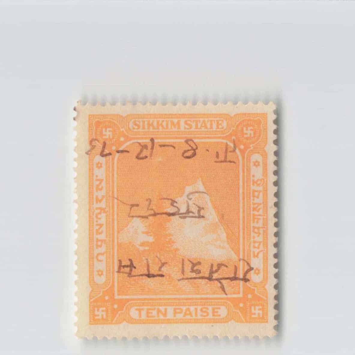 > *[令]インド シッキム 収入印紙 10パイサ 藩王国、英領インド、収入証紙、切手 India Sikkim Revenue Stamp 10 Paisa[S9332]7r7