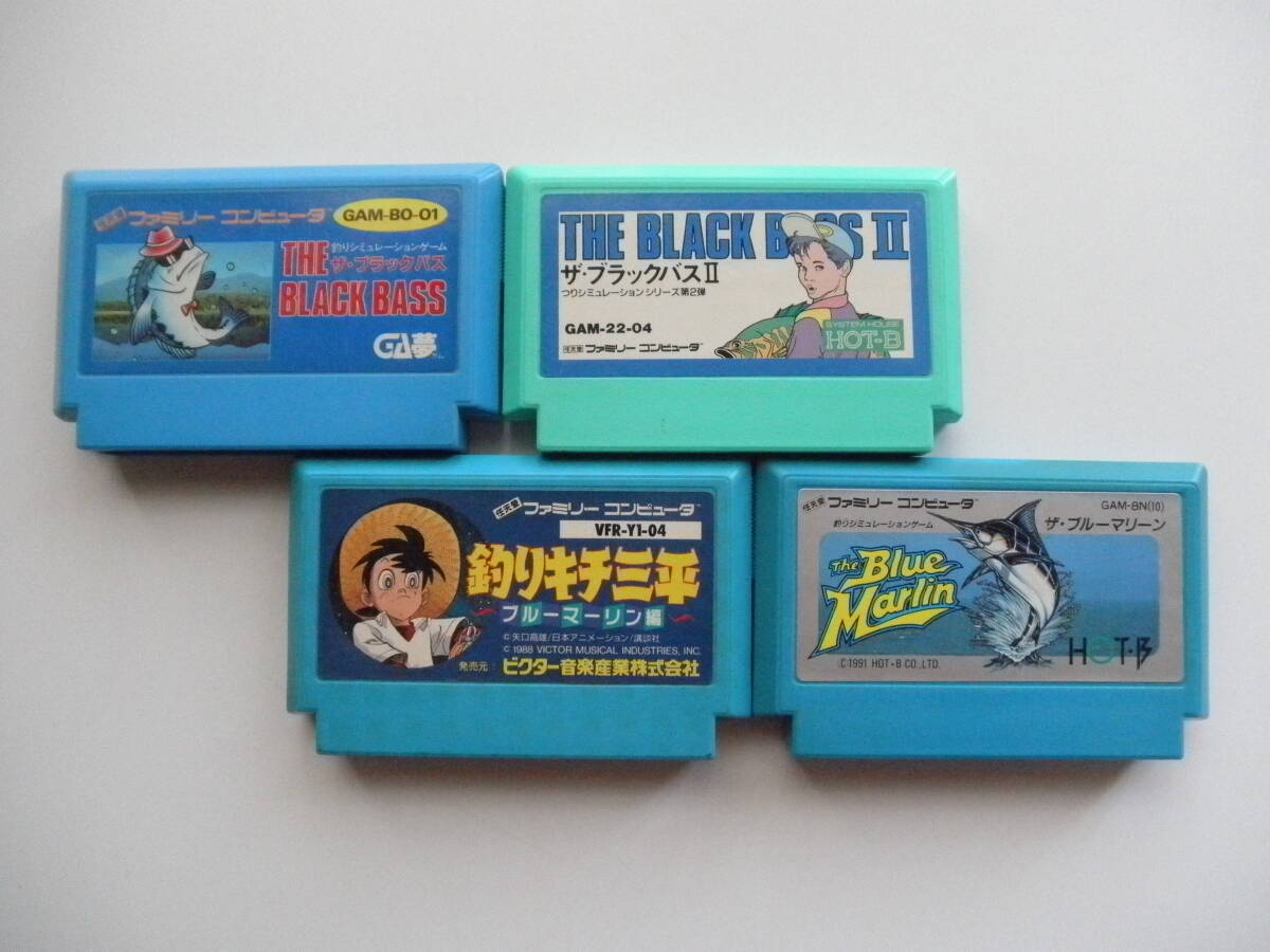 > ●FCソフトセット 釣り4本(ザ・ブラックバス、ザ・ブラックバスⅡ、ザ・ブルーマリーン、釣りキチ三平ブルーマーリン編) 初期起動確認済