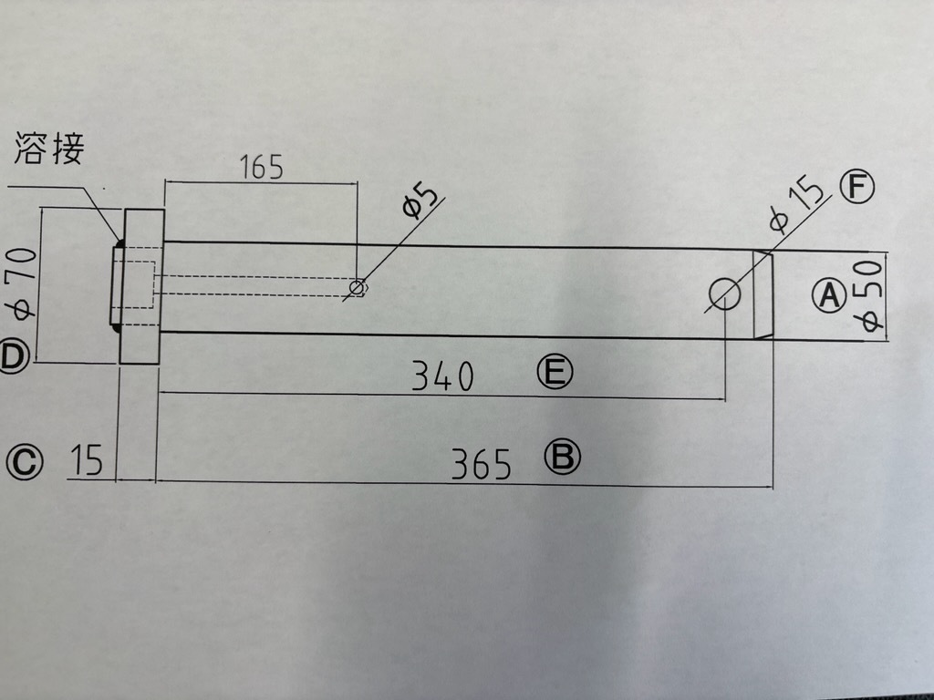 - NO.2118 Φ50用 溶接ツバ下365mm グリス穴付きバケットピン1本 /ブッシュ2個/止めカラー1個