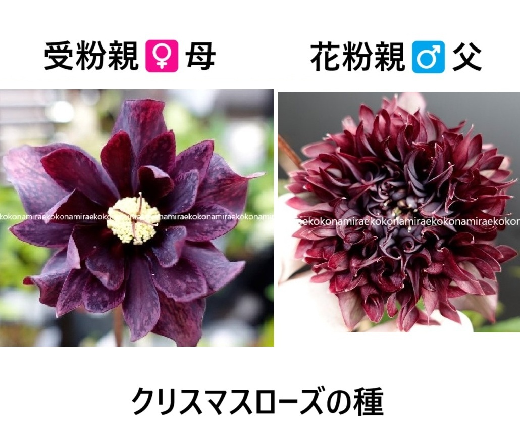 - 562●今回限 種6粒クリスマスローズ 種子♀絞系 パープルブラック 美しい♂超々多弁 クレオパトラ 貴重