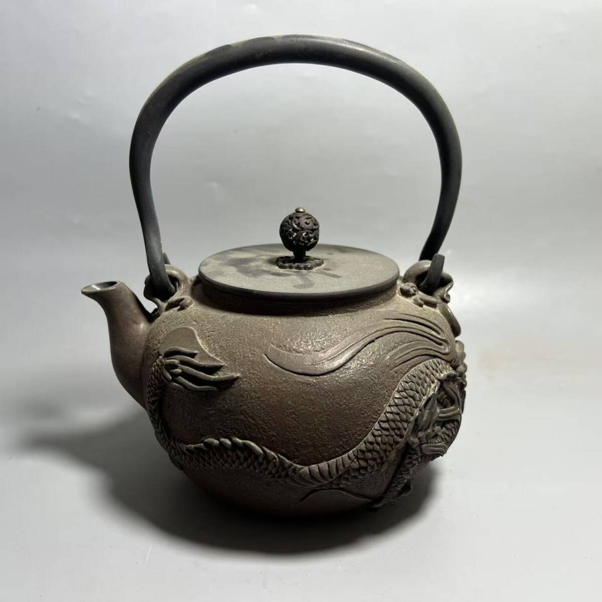 - 旧家蔵出し 鉄製 鉄瓶 飛龍紋 急須 茶道具 提梁瓶 提壺 茶道品 極細工 置物擺件 美術品 旧家蔵出 旧家供養品