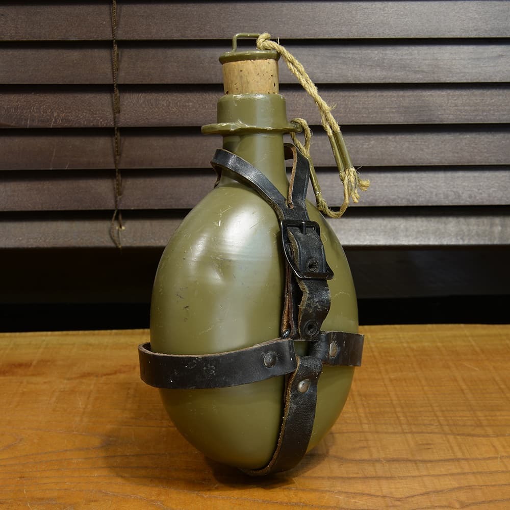 - チェコ軍放出品 キャンティーン M60 アルミ製 レザーストラップ付 [ コルク栓 / 可 ] 捷軍放出品 アルミニウム製 水筒
