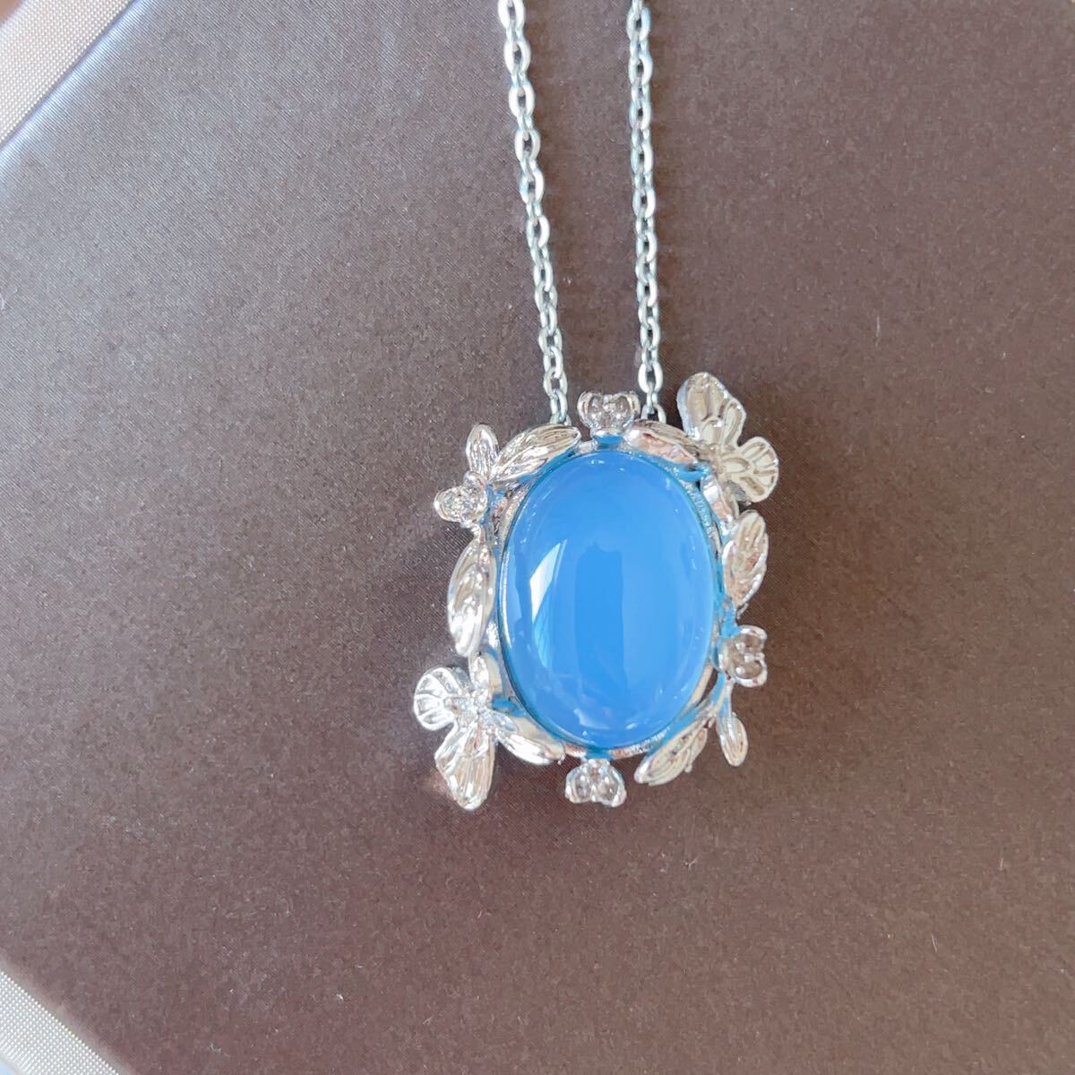 - ◇ブルーメノウ◇青瑪瑙◇アゲート◇ネックレスペンダント◇パワーストーン◇天然石◇巾着袋付き◇プレゼントにも◇039P91519