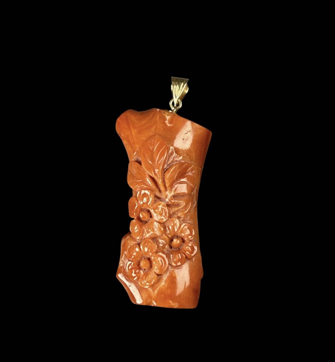 - 【偲】■極美品■k18 赤珊瑚 金 首飾り ネックレストップ 根付 重約8.3g y-164