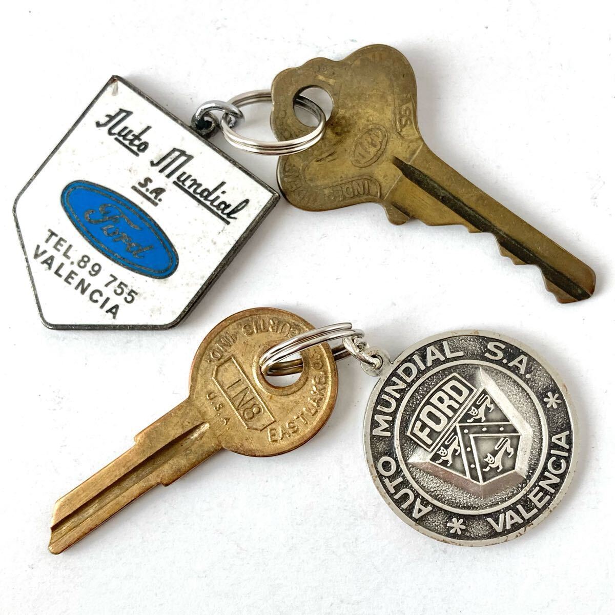 - 128当時物!1960年代フォードFORD旧車chevrolet輸出用エンブレムプレート金属製☆キーホルダー真鍮鍵キーセット ーカギ鍵ヴィンテージ