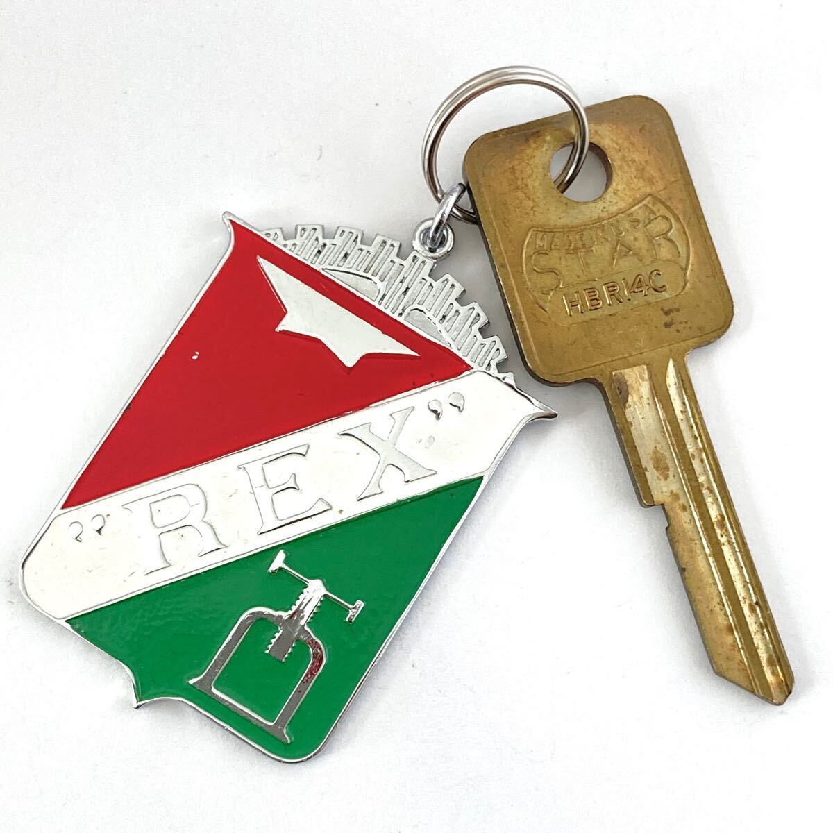 - 21当時物!1960年代レックスREX企業物ヴィンテージ輸出用エンブレムプレート金属製☆キーホルダー真鍮鍵キーセット キーホルダー カギ 鍵